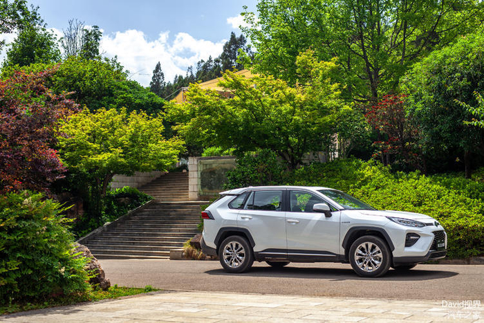 说回这台威兰达E-CVT四驱豪华版,官方指导价为24.08万元,如果拿这个钱数在一汽丰田RAV4荣放的车型列表中寻找,相对应的是一台指导价格为24.28万元的双擎2.5L CVT四驱精英PLUS版。从参数列表中可以看出,二者拥有相同的车身宽度、高度、轴距,但威兰达的车身长度比RAV4荣放长了约65毫米,更长的车身对于走硬派路线的RAV4荣放来说并不适合,但对于走城市风格的威兰达来说就再合适不过了,这也让威兰达看起来更加修长。或许有人会问,车身重量也会相应增加?并没有,眼前这台威兰达双擎E-CVT四驱豪华版的整备质量比RAV4荣放双擎2.5L CVT四驱精英PLUS版还要少了约10公斤。不过虽然重量更轻了一些,但是在加速性能和燃油经济性上两者几乎完全一致。