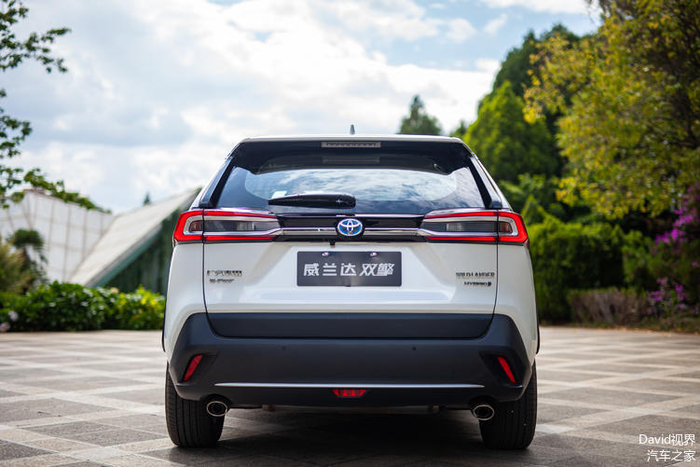 相比RAV4荣放略带攻击性的设计,威兰达的外观设计就显得“亲民”许多。类似纺锤型的前格栅多多少少让人联想到雷克萨斯,这大大提升了威兰达的品质感。投射式大灯和雾灯均采用LED光源。车身侧面的线条也不乏力量感和层次感,与18英寸轮圈相搭配的是优科豪马的BluEarth-XT系列轮胎。尾部,C型尾灯拓宽了尾部视觉宽度的同时也提升了辨识度,双侧共双出的排气系统并没有被集成到尾部的设计中。