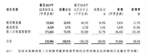 【业务关系】2019年,雅生活服务2.34亿平方米的在管面积中,来自关联方的仅占26.7%。