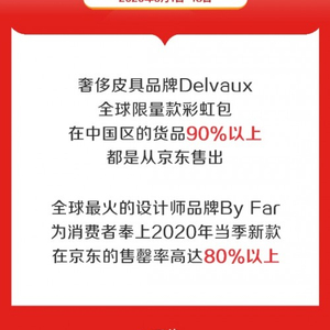 6月18日,奢侈品箱包成交额同比增长156%,190年历史奢侈皮具世家DELVAUX的表现尤为抢眼。DELVAUX于今年初选择京东作为其全球唯一的线上合作伙伴, 6月1日,DELVAUX将专柜预定都要排队的全球限量款彩虹包在京东现货发售,开场1小时就售出5只,截至目前,DELVAUX全球限量款彩虹包在中国区的货品90%以上都是从京东售出。