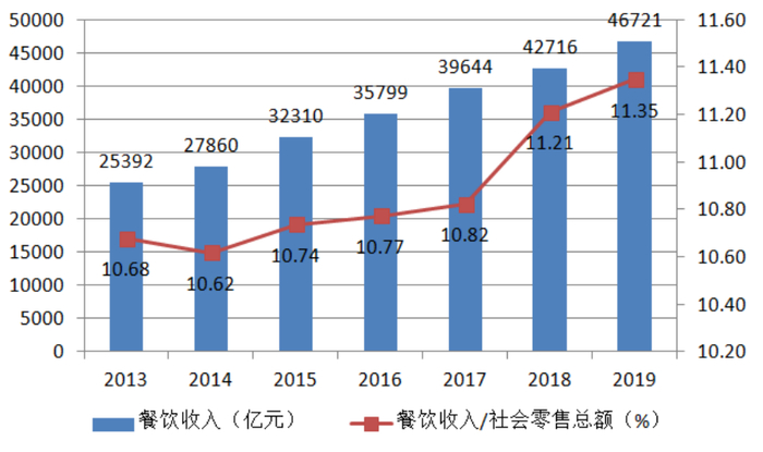 2013-2019年中国餐饮收入情况(来源:国家统计局)
