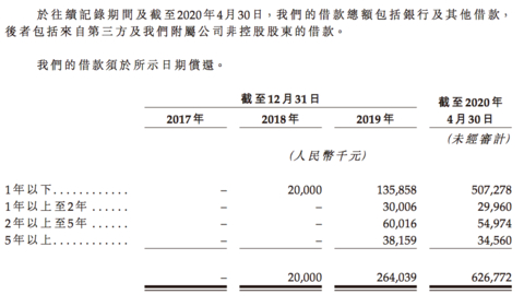 不过从借款数额来看,雅城集团的目前的有息负债水平也在急速增加。2019年末该公司的总借款约为2.64亿,但仅4个月后,截止2020年4月30日该数字就变成了约6.27亿,且一年内到期的借款在5.07亿元。而2019年末,雅城集团所拥有的现金及现金等价物仅有约3.09亿。
