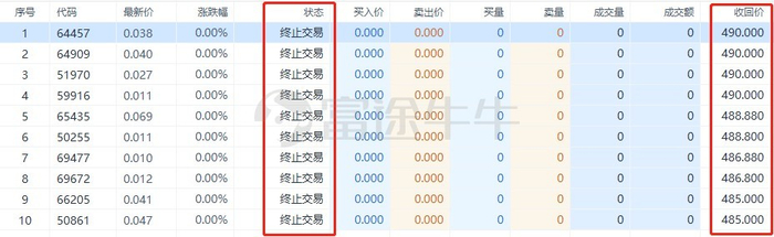 继续以腾讯为例,在股价在大幅上涨后近两个交易日都出现回调,股价跌回至485港币,于是可以看到6月26号许多收回价低于490的牛证都被收回,终止交易。