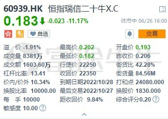 举个例子,60939这只牛证,收回价是22350,行使价是22250,如果恒指某个交易日跌至22350该牛证被收回,当天最低又跌至22300,那么每股牛证剩余价值就是(22300-22250)/10000=0.005港币,相比目前0.18元的价格来说,已经亏掉95%以上。如果当天恒指最低跌破22250,那么就没有剩余价值了。如有剩余价值,相关结算金额将会于计价后约3个结算日,自动过户至中央结算所,继而自动过户至投资者的证券户口。