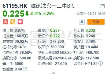 下面我们通过具体的例子进一步了解,在富途app或者pc客户端上输入代码「61195」就可以看到「腾讯法兴一二牛B.C」这只牛证。