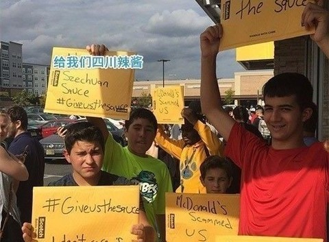 2017年,麦当劳为配合1998年版《花木兰》推出的四川辣酱(Szechuan Sauce)在时隔20年后,终于再次和美国人民见面。然而麦当劳搞了一波限时一天的骚操作,结果引发老美的争相抢购,排队场面一度失控,没抢到的小伙伴自发在麦当劳门口示威、抗议,最后甚至惊动了警察。