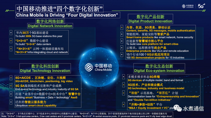 中国移动杨杰董事长说的“五纵三横”,“四个数字化创新”是指什么?