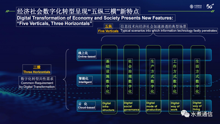 “五纵三横”是指经济社会的数字化转型的新特征。