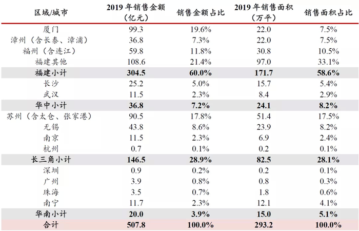 表 1:公司战略深耕核心城市,厦门、福州、苏州、无锡等销售占比较高