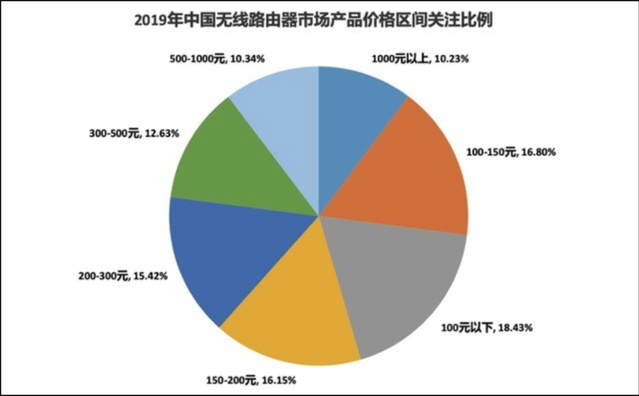 根据中关村在线数据统计,在2019年无线路由器产品关注比例中,虽然100元以下占比18.43%仍排名第一,但和其它关注区间差距已不大。其中,100-500元的无线路由器为消费者的首选,其占比达到了61%。