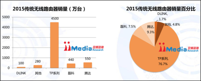 据艾媒咨询数据,2015年传统无线路由器市场,TP-Link市场份额达到76.7%。