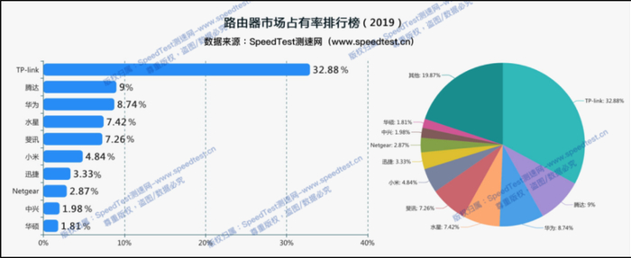 2019年路由器市场占有率情况(数据来源:测速网)