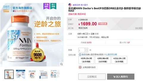 事情起因于7月9日,金达威董秘在互动平台上表示,在美国工厂生产的Doctors Best NMN β-烟酰胺单核苷酸NAD抗衰老逆龄(产品),已经上市销售。天猫旗舰店目前售价1699元/瓶。