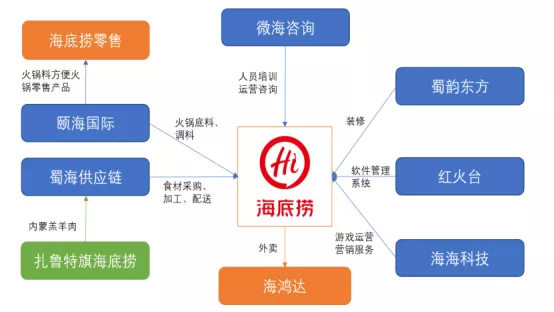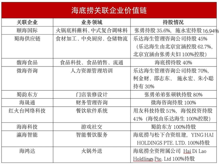 海底捞系内部拥有错综复杂的资本关系: