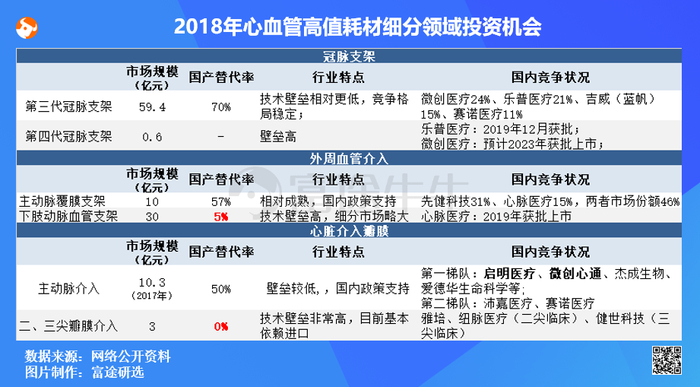主动脉覆膜支架领域-先健科技、心脉医疗;下肢动脉血管支架-心脉医疗、美敦力、强生、雅培;