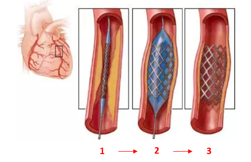 第一次革命:将气囊导管输送至冠脉血管狭窄处,通过向气囊(PTCA)充气扩张狭窄血管,使其恢复血运功能。但有些患者在血管扩张后,会面临再狭窄问题。