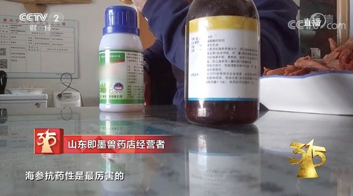记者在山东即墨调查发现,这种现象非常普遍。那么,记者很是诧异,往池塘里投放这么多的敌敌畏,难道不怕将海参杀死吗?一位兽药店经营者告诉记者:“海参抗药性是最厉害的,敌敌畏都药不死海参。”此外,养殖户告诉记者,使用过农药的海水还会被重新排回大海。一些大棚海参养殖户也偷偷告诉记者,他们在养殖过程中也经常用到抗生素等各种兽药原粉。