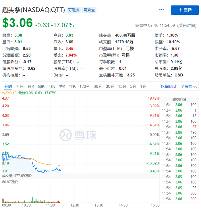 消息出来后,趣头条的股价暴跌近20%。