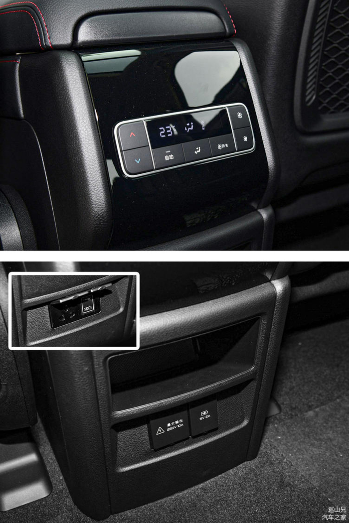 后排方面,唐DM装备了独立空调,自带的220V电源输出和USB接口能满足车内乘客的各种供电需求,交流电源3.3kW的最大输出功率甚至可以烧水煮饭,这在日常出游时会非常方便。