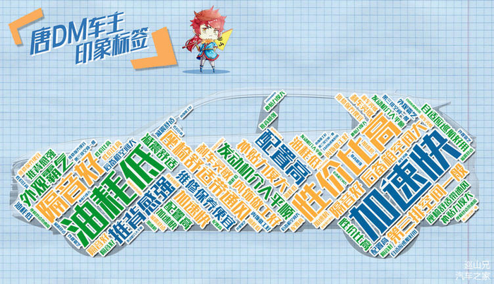 作为资深新能源车企的主力产品,比亚迪唐DM已经发展到第二代车型,巡山兄也对50位车主的口碑评价进行了词频和语义分析,为大家归纳出上面这张“比亚迪唐DM车主印象标签”。