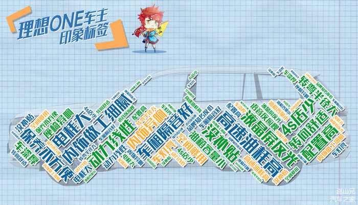 相比于传统车企,理想汽车作为造车新势力的一员,由于上市时间短,交车数量少,目前耐久度还需继续观察。巡山兄为此找到了约50位车主的口碑评价,并进行了词频和语义分析,为大家归纳出上面这张“理想ONE车主印象标签”。