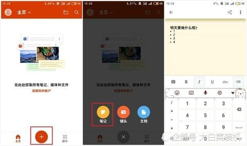 而office的主界面同样也是精简风,两者的操作界面风格相差不大,主界面有主页、+以及操作功能。其中,点击+时,你可以看见它还有笔记、镜头、以及文档等功能。