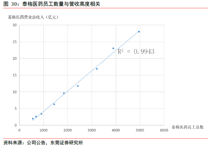 a)CRO偏向于劳动密集型行业。产能和成本是衡量CRO企业经营能力的重要指标。近年来,源于CRO/ CDMO 市场的繁荣,头部企业订单均处于溢出状态,因此产能成为制约公司发展的重要因素。其员工数量作为CRO/CDMO产能的间接指标,增速往往和公司收入增长呈现较强的正相关关系。