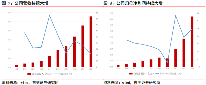 2019年公司归母净利润8.42亿元,同比增长78.24%;从2010年至2019年,公司归母净利润从0.32亿元增长至8.42亿元,获得了数十倍的利润增幅。