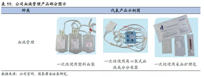 血液管理业务产品包括血液采集、储存、分离、灭菌消毒等。2019年公司血液管理业务实现收入4.58亿元,同比增长13.9%,占公司收入的4.4%。其中公司血袋产品市场份额超过日本泰尔茂,国内市场占有率达到 80%。