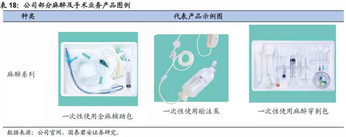 产品包括全身麻醉耗材、局部麻耗材、麻醉辅助耗材、ICU使用的器械、开放及微创手术器械等。2019年公司麻醉及手术业务收入1.50亿元,同比增长41.1%,占比1%,规模尚小,仍处于培育阶段。