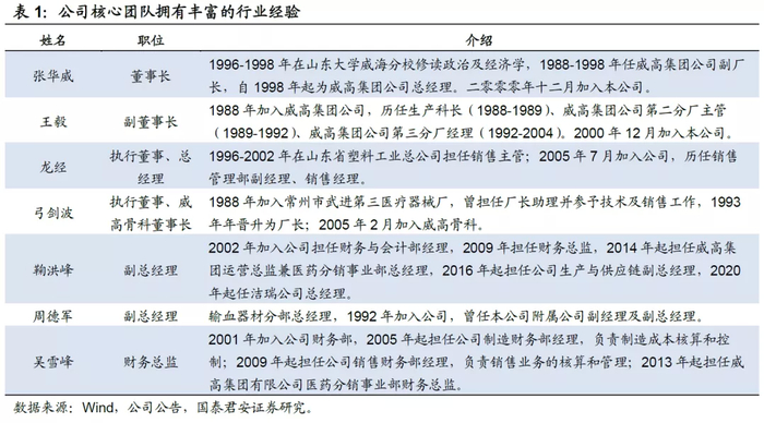 母公司威高集团下辖医用制品、血液净化、骨科、医疗装备、药业、心内耗材、医疗商业7个产业集团,在全球医疗器械15大细分市场中进入11个领域。上市公司于2018年重新梳理划分产品线,集团内其它重合业务(创伤管理、麻醉手术、血液管理、介入等)有望纳入上市公司,与现有业务充分整合后有望进一步提升公司整体竞争实力。