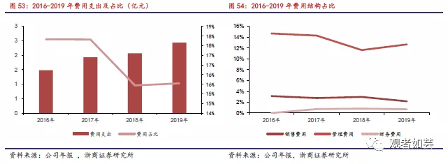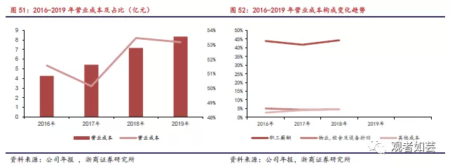 公司2016-2019年成本分别为4.28亿元、5.43亿元、7.17亿元以及8.35亿元,占当年营业收入分别为51.6%、50.2%、53.5%以及53.2%。