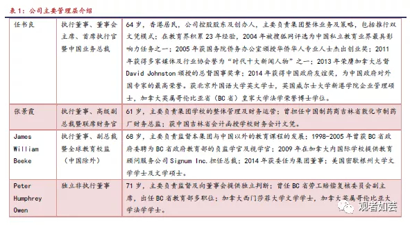 枫叶集团拥有国际化背景的管理层,在国际教育领域拥有25年丰富的办学实践经验。公司创始人、控股东及CEO任书良先生于1995年创办大连枫叶高中,秉承“中西教育优化结合,实施素质教育”的办学理念,致力于不分种族、肤色、国籍,为所有受教育者提供一流教育服务的使命,培养国际精英人才,使枫叶成为中国颇具影响力的国际教育品牌。