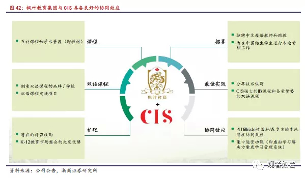 公司有望在招生招聘端收获更广阔的学生来源及优质师资来源;同时,基于世界研究、领导力、创新性思维、学术英语、12种教学法等更符合枫叶学生的特点和培养目标,枫叶学生将在毕业升学端获得更多进入世界顶尖大学的机会,进一步提升集团教学口碑。