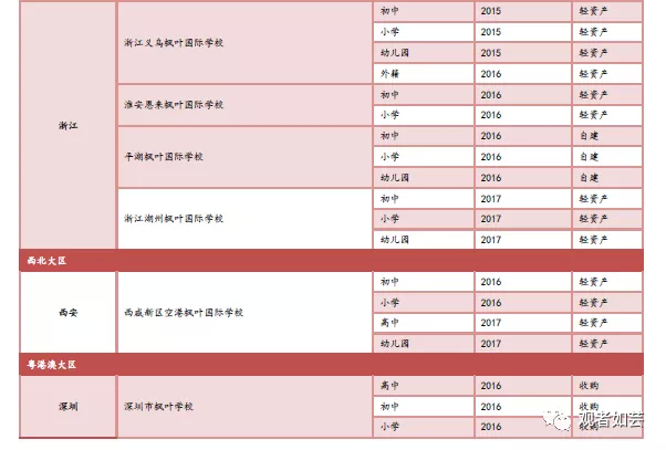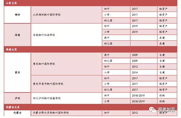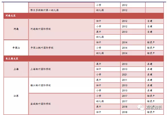 配套开设若干初小及幼儿园校区,提升枫叶教育大区的渗透率,幼儿园、初小校区为高中校区提供生源。
