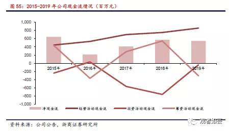 公司近几年主营业务增长稳定、运营状况良好,经营活动的现金流也呈现较为稳定的增长趋势。公司2016-2019年经营活动现金流量净额分别为:5.33亿元、6.99亿元、7.50亿元以及8.57亿元。