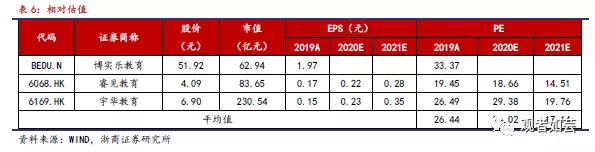 选取可比标的博实乐教育(0667.HK)、睿见教育(6068.HK)和宇华教育(6169.HK),其主营业务在国际教育领域均有所布局,面向消费群体、商业模式等方面较为相似,具有一定可比性,行业在2019-2021年平均估值为26.44x、24.02x、17.14x。