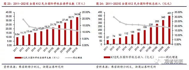 。近年来,以碧桂园、星河湾、观澜湖、万科等为代表的房地产企业,以枫叶教育、海亮教育、成实外为代表的K12行业,以新东方为代表的教育培训企业纷纷开设国际学校,以金融街教育、国开教育、华发教育为代表,国企办学也成为国际学校领域新型办学业态。政策支持下各类资本纷纷涌入民办国际学校领域,供给扩张。