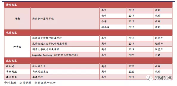 1)2020年收购顶尖K12国际学校CIS抢滩新加坡辐射东南亚市场,随着优质海外资产协同推进,公司大概率将凭借BC+AP+IB世界课程收获优质口碑,目前枫叶世界学校试点校区首届毕业生录取成绩亮眼;