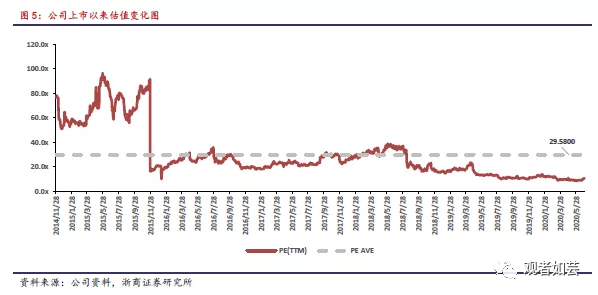 上市以来,公司平均PE29.58x,近两年平均PE18x,2020年PE为10x左右,目前估值处于历史低位。