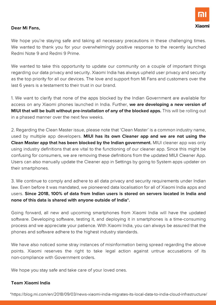 随着未来MIUI印度版的更新,印度政府禁令中的应用名单都会被一一干掉。根据部分外媒报道,针对印度市场的MIUI新版本将会在几周时间之内分批推送。