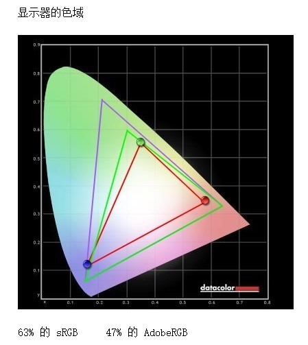 63%的sRGB色域和47%的aRGB色域。