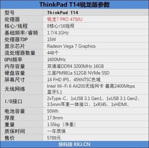 当然,作为一款血液里都流淌着商务基因的笔记本,除了锐龙7 PRO 4750U处理器之外ThinkPad T14 锐龙版还是有一些不同于传统轻薄本的地方: