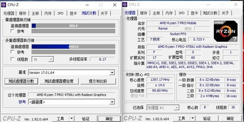 锐龙7 PRO 4750U的单线程分数为502,多线程分数为4103。