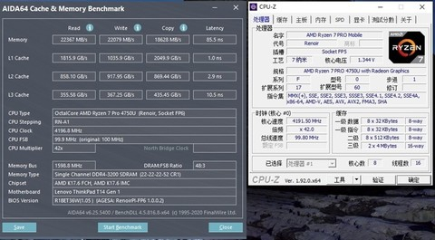 另外锐龙7 PRO 4750U处理器的TDP是15W,ThinkPad T14锐龙版解锁到了22W,算是一块准鸡血的低功耗处理器。