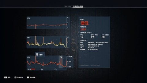 锐龙7 PRO 4750U跑出了6825分,换算成帧数为41FPS。
