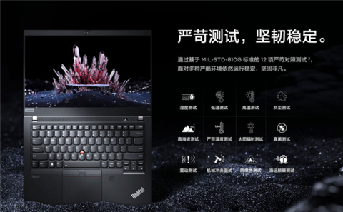 ThinkPad T14 锐龙版通过了包括跌落测试、低温测试、高温测试、海拔高度测试、防尘测试、机械冲击测试、防爆燃测试、震动测试、真菌测试等等在内的12项美国MIL-STD-810G军标测试,确保了在各种严酷的环境下也能稳定运行。