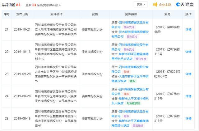 另外,近年来,海底捞以侵害商标纠纷权为由,起诉了多个与“海底捞”有关的公司,包括周村捞酒店、七星关区众乐海底火锅店、莱芜市海中捞餐饮管理有限公司等。其中一些案件已撤诉,一些案件中,海底捞的部分诉讼请求被支持,如赔偿金及损失数万元,还有部分案件中,海底捞也同样败诉。