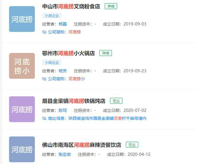 值得关注的是,市界搜索“河底捞”发现,有多个相关公司,包括鄂州市河底捞小火锅店、眉县金渠镇河底捞铁锅炖店、高新区河底捞中餐馆等。