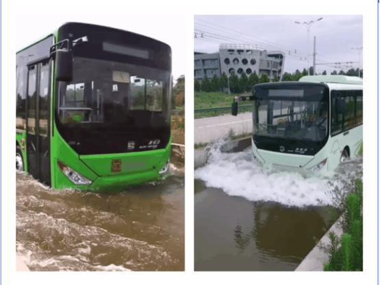 今年7月,我国长江中下游以及华东地区汛情严峻,很多城市出现内涝对人们日常出行造成很大不便。中通客车凭借可靠的涉水性能“乘风破浪”,保障乘客正常出行,获得交口称赞。